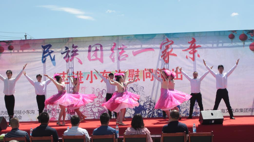七月的南山陽光明媚,水西溝鎮(zhèn)小東溝村新建的文化廣場一大早已經(jīng)熱鬧非凡,村民不約而同的早早的來到這里忙碌起來了,幫助駐村工作隊和村委做起了灑水、擺凳子、音響設(shè)備等準(zhǔn)備工作。由“訪惠聚”工作隊和艾克森聯(lián)合邀請的專業(yè)文化團(tuán)隊,他們帶著精心編排的文藝節(jié)目和小東溝村各族村民,以“民族團(tuán)結(jié)一家親”為主題的聯(lián)歡活動在這里舉行。全村民眾和60多對“結(jié)對親戚”歡聚一堂,唱歌、跳舞、雜技、說唱各種表演形式講述著民族團(tuán)結(jié)的親情。