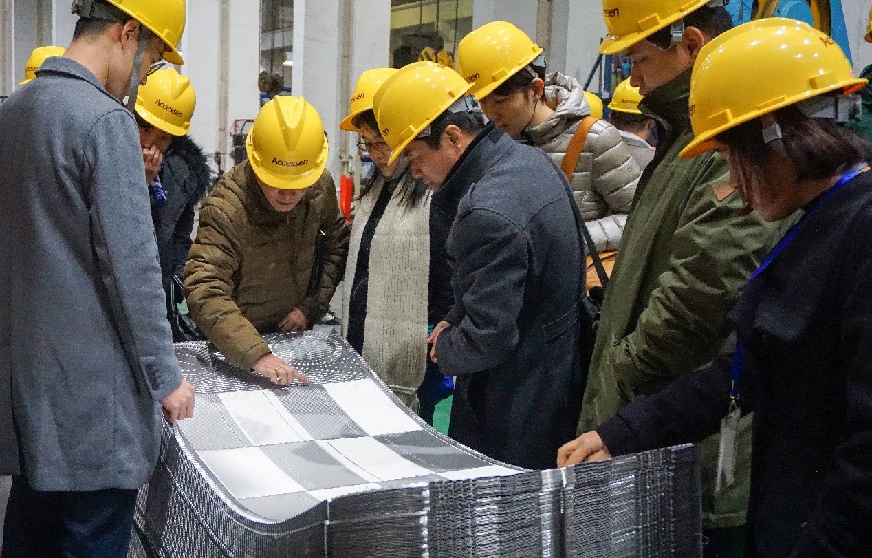 艾克森技術(shù)人員向?qū)<覉F(tuán)詳細(xì)介紹了板式換熱器、焊接式換熱器和板式換熱機(jī)組等產(chǎn)品,并與專家們分享了艾克森產(chǎn)品在醫(yī)藥食品行業(yè)的成功應(yīng)用案例和技術(shù)特點(diǎn)。帶領(lǐng)專家團(tuán)走進(jìn)謝春路工廠和太倉工廠的生產(chǎn)一線,觀看了艾克森的生產(chǎn)加工設(shè)備,了解板式換熱器整個生產(chǎn)工藝的流程。公司引入的先進(jìn)自動化生產(chǎn)設(shè)備,包括全球先進(jìn)的電泳涂裝生產(chǎn)線和自動化焊接機(jī)器人、換熱機(jī)組全性能測試平臺、E-cloud智慧能源系統(tǒng)等設(shè)備,引起了專家們極大的興趣。就艾克森核心的板式換熱技術(shù)向?qū)<覉F(tuán)介紹了板片的獨(dú)特設(shè)計,可以根據(jù)不同的工況設(shè)計不同的形狀和深度,以達(dá)到最佳換熱效果。機(jī)器人切割和焊接技術(shù),更大程度保證管件尺寸精確,焊接質(zhì)量更穩(wěn)定。電泳涂裝生產(chǎn)線可以延長管道壽命,耐腐蝕性更高,耐高溫,降低管道阻力的特點(diǎn)等,得到了專家們的一致肯定。