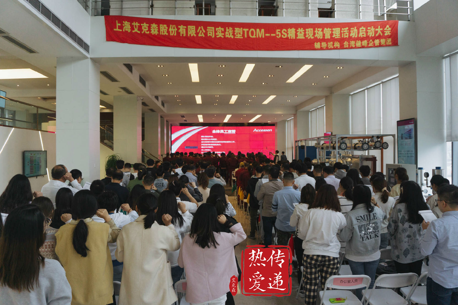 2021年10月19日,在專業(yè)咨詢機構(gòu)的輔導(dǎo)下,上海艾克森股份有限公司全體生產(chǎn)和行政人員在艾克森謝春路工廠參加了“全員5S精細化管理大會”,會上公司對5S的開展進行了組織培訓(xùn),對5S工作組的人員進行了組織安排。公司希望通過5S管理活動不斷提高企業(yè)的管理水平。
