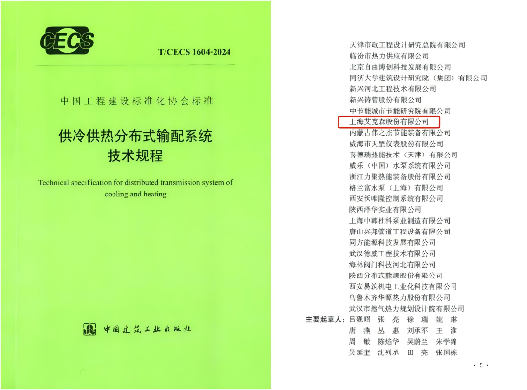 由西安市建筑設(shè)計(jì)研究院、亞太建設(shè)科技信息研究院主編,上海艾克森、天津市政工程院、同濟(jì)大學(xué)建筑院、中節(jié)能、格蘭富等多家單位共同編制,中國工程建設(shè)標(biāo)準(zhǔn)化協(xié)會(huì)批準(zhǔn)發(fā)布的《供冷供熱分布式輸配系統(tǒng)技術(shù)規(guī)程》T/CECS 1604-2024已正式發(fā)布施行。上海艾克森在供冷供熱分布式輸配系統(tǒng)中分享了換熱和輸配相關(guān)的技術(shù)積累與實(shí)踐經(jīng)驗(yàn),完成了本次技術(shù)規(guī)程的編制工作。該規(guī)程共分9章和3個(gè)附錄,系統(tǒng)涵蓋了工藝設(shè)計(jì)、設(shè)備選型、控制系統(tǒng)、施工驗(yàn)收及運(yùn)行維護(hù)等全生命周期技術(shù)要求,為行業(yè)提供了科學(xué)、規(guī)范的技術(shù)指南。
