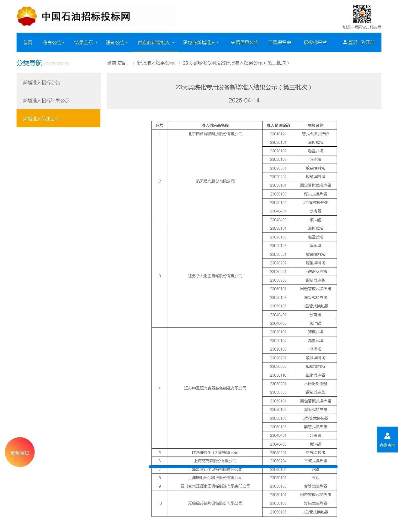 通過公開招標(biāo)資格準(zhǔn)入中石油煉化設(shè)備新增供應(yīng)商合格名單后,中石油的采購經(jīng)理和來自大慶石化、吉林石化的考察專家團(tuán)一行于2025年2月到上海謝春路工廠考察,全程對(duì)艾克森的公司資信、產(chǎn)品技術(shù)、石化業(yè)績(jī)、生產(chǎn)裝備、現(xiàn)場(chǎng)管理、供應(yīng)鏈管理、產(chǎn)品質(zhì)量控制和售后服務(wù)等全方位考察和指導(dǎo),最終確認(rèn)公司實(shí)力與管理水平等符合中石油一級(jí)供應(yīng)商的標(biāo)準(zhǔn),上海艾克森成功通過了合格供應(yīng)商現(xiàn)場(chǎng)審核,正式成為中石油一級(jí)供應(yīng)商。近期完成了二級(jí)供應(yīng)商升級(jí)流程,確認(rèn)上海艾克森股份有限公司正式成為中石油天然氣集團(tuán)板式換熱器產(chǎn)品的一級(jí)供應(yīng)商,供應(yīng)商編碼1000648372,物資編碼A29050303板框式換熱器。